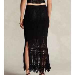 Elegant Black Pointelle Knit maxi Skirt Polo Ralph Lauren size XL NWT