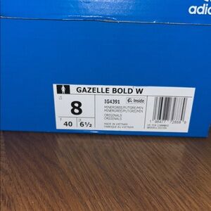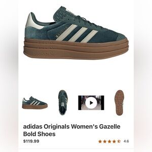 Stylish Adidas Gazelle sneakers in green with white stripes. Features a brown sole for a classic look.