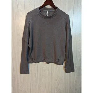 Fabletics Long Sleeve Sweatshirt Women's Gray Lightweight Drawstring Crop Large