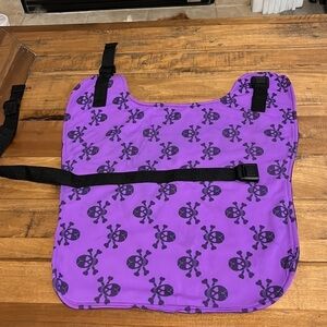 Cooling coat, skull and crossbones, purple and black, adjustable body and neck buckles