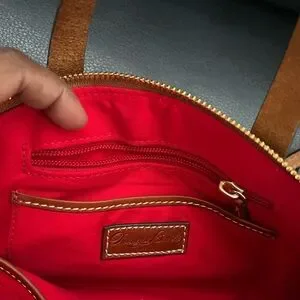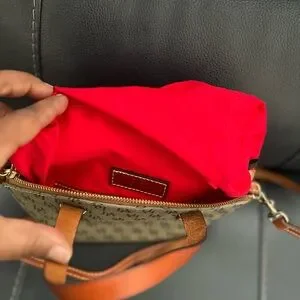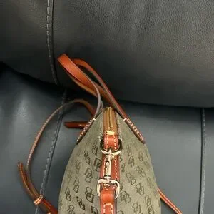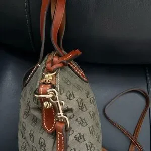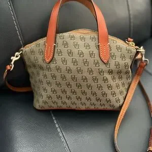 AUTHENTIC Dooney & Bourke Brown and Hunter Green Monogram Satchel