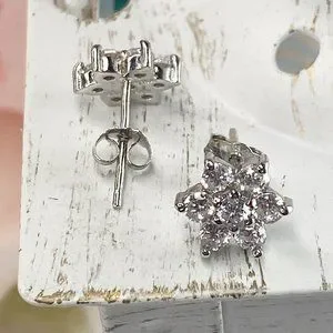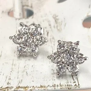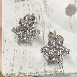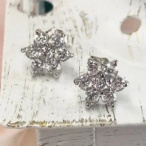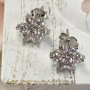 Sterling Silver Woman Star Cubic Zirconia Stud Earrings
