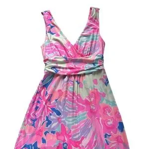 This stunning Lilly Pulitzer Sloane Playa Hermosa Maxi Dress in size M is perfect for any occasion! With its beautiful floral pattern, sleeveless design, and V-neckline, this dress is sure to turn heads. The pullover styling makes it easy to wear, while the lightweight and stretchy jersey fabric ensures a comfortable fit. Whether you're traveling, heading to a party, or just running errands, this dress is versatile enough to suit any style.