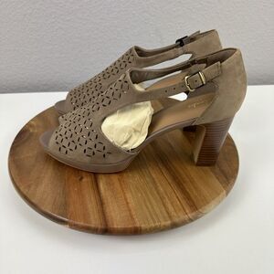 Clarks Artisan Sandals Jenness Energy Peep Toe Shoes Womens 10 Brown Strappy