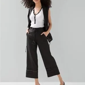 White House Black Market Black Wide-Leg Pants with Tassel Tie size 4 Long