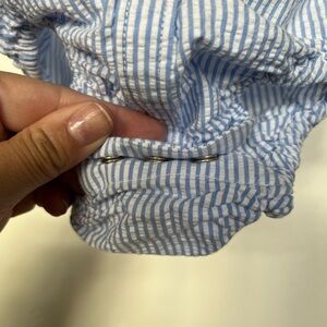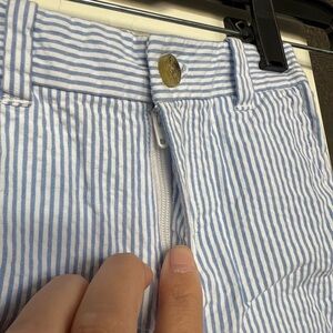 Janie and Jack Blue and White seersucker onesie and shorts sz 12/18 M EUC