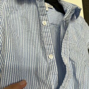This classic button-down shirt from Janie and Jack features a stylish blue and white pinstripe pattern. Designed with a tailored fit and short puffed sleeves, it offers a crisp and polished look. The lightweight fabric ensures comfort, making it a versatile addition to any wardrobe.