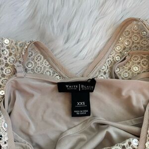 This sophisticated sparkly sequined tank top from White House Black Market is a versatile addition to your wardrobe, offering a sleek and stylish look for any occasion. Crafted with attention to detail, it features a flattering fit and a timeless design that pairs effortlessly with both casual and formal outfits.