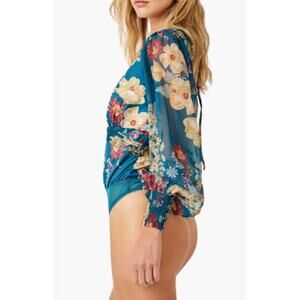 Free People Intimately Wanderlust Floral Print Bodysuit in Blue Jade Combo