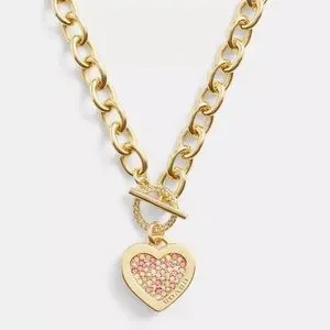 Coach Pavé Heart Chain Necklace, NWT!!