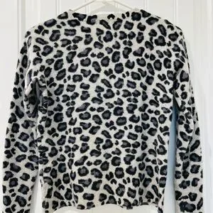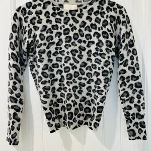 Cynthia Rowley Crew Neck 2-Ply Cashmere Sweater in Black and Grey Leopard