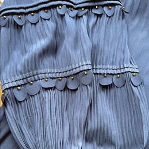 Ramy Brook Navy Blouse with Gold Details and Pleated Sleeves. Size M.