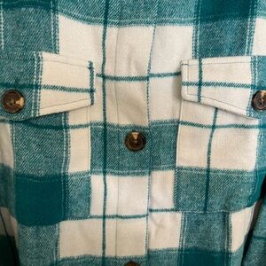 Teal and White Plaid Button-Up Flannel shirt jacket NWT