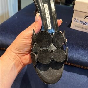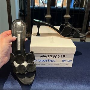 Manolo Blahnik Black suede kitten heel mules with Haribal Design size 38