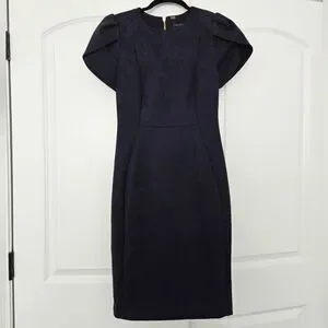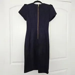 This elegant navy dress is perfect for a date night out, office job, or church. Its sophisticated design and rich color make it a must-have in your wardrobe. Form fitting, hugs your curves in the right places. Nice and thick material.