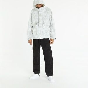 Stay stylish and comfortable with this men's white and gray marble watercolor hooded jacket. Perfect for any casual outing. Nike Tech Pack Men's White gray watercolor Hooded sports Jacket windbreaker XL