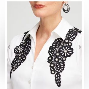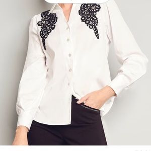 :: CHICO’S Poplin Black Lace on White Appliqué Blouse Dressy Shirt SOLD …
