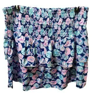 NWT Simply Southern Navy/Pink Shirred Skirt Starfish & Shell Print~Above Knee XL