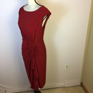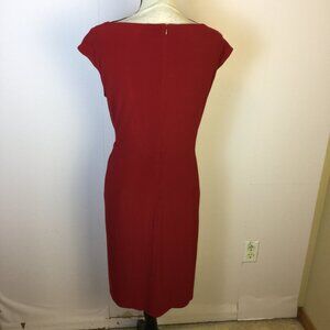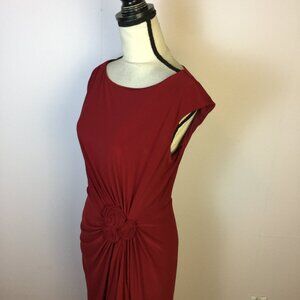 Jones New York Sheath Dress Sz 8 Womans Red Knit Short Cap Sleeve Flower Ruched