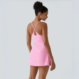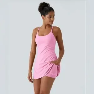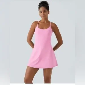 Super cute baby pink dress from Halara with built-in shorts and built-in bra! Built-in bra, features removable, padding, and shorts. Have pockets on both sides! Excellent preowned condition, new without tags. NWOT