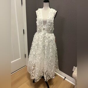BHLDN STEVIE SLEEVELESS V-NECK FLORAL APPLIQUÉ A-LINE MIDI DRESS
