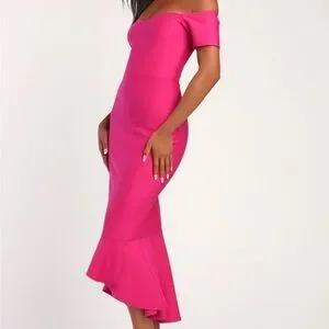 Step out in style with this elegant pink off-shoulder dress. Perfect for any occasion, this dress offers a flattering fit and a chic look.