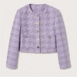 Elevate your style with this chic purple jacket. Perfect for any occasion. Only worn once; perfect new condition
