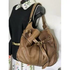 BURBERRY Vintage Brown Leather Classic Hobo Bag