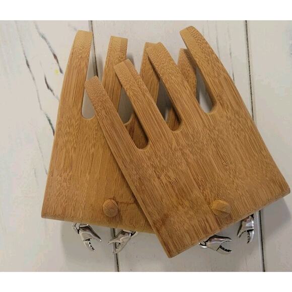 Beach Kitchen Bamboo Crab Salad Forks Serveware Metal Crabs. These have not been used but displayed at the lake house. These have knobs that help in serving and locking the pair together when not in use. I used the knobs to display them on the wall. In excellent condition.Each measures 4 x 6.5 including crab.