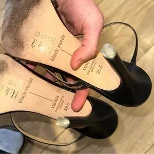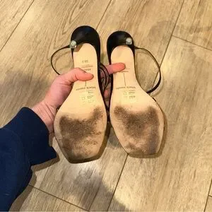 Step out in style with these elegant black strappy heels. Perfect for any occasion, these shoes offer both comfort and sophistication. Great condition, only worn on sole. No other visible wear. Size 38.5, I’m an 8 and they fit perfect