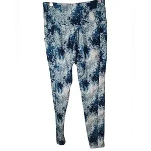 Bally Total Fitness Blue Patterned High Rise Pocket Work Out Leggings. L