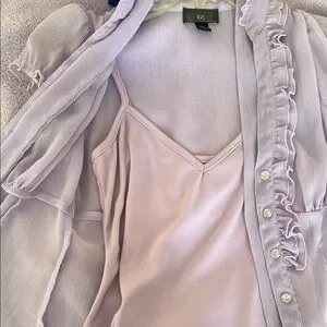 Elegant lavender two piece top with ruffled details, perfect for any occasion. Soft fabric ensures comfort and style.