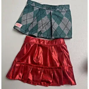 Skirts include Shiny Red, silver, plaid, tulle. Bakers Hat, Bucket Hat & sleeveless dress