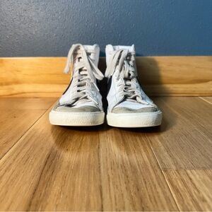 Stylish Nike mid high sneakers featuring a white and black design. Perfect for casual wear. These are the mid ‘77 blazer women’s size 8.5good condition, see all pics