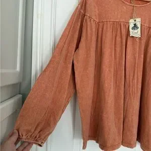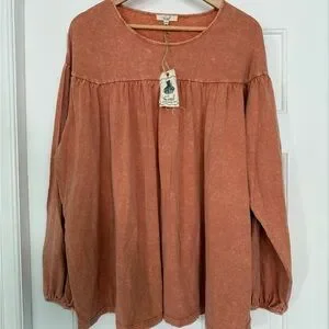 NWT Easel mineral wash baby doll long sleeve top in color “faded coral”, size large. Very soft and flowy. Perfect for any occasion, this top offers both comfort and style.
