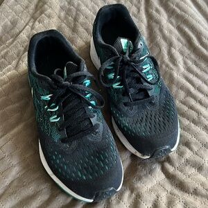 Nike Zoom Winflo 4 running shoes in black and teal. Comfortable and stylish for any workout. Gently used condition!