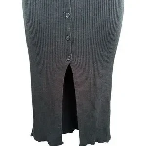 The button-through dress, reimagined for the modern wardrobe. This black soft knit dress offers a masterclass in effortless styling. The tactile knit construction provides both comfort and a subtle drape, while the button-front design allows for versatile layering – wear it closed as a dress, or open as a lightweight cardigan. The length makes a nice sexy statement