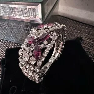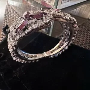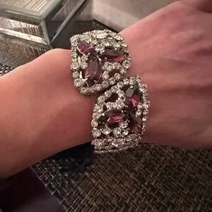 This stunning bracelet features exquisite purple and silver crystals, perfect for adding a touch of elegance to any outfit. Ideal for special occasions or everyday wear. EUC.