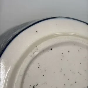 Decaled stoneware with thumb rest.