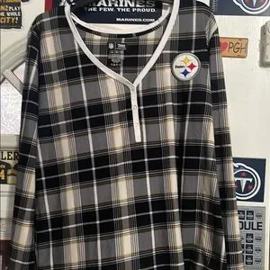 Black and white plaid long sleeve shirt with Steelers logo. Says sleepwear but I’d wear it out.