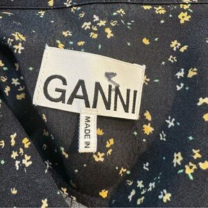 GANNI V-Neck Black Floral Print Collared Long Sleeve Button Down Shirt