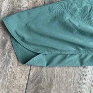 Cross Back Drawstring Scoop Neck. The last picture is true to color. It is kale/forest green, not grass green. The images make it look "greener" than it actually is. Great condition!