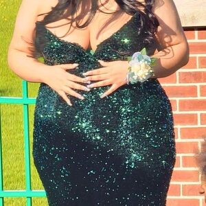 Make a dazzling entrance at prom with this exquisite Emerald Green gown, adorned with shimmering sequins for a captivating sparkle. The sleeveless design features a flattering sweetheart neckline, perfect for showcasing elegance and style. This floor-length Mermaid bodice dress is tailored to perfection, ensuring a memorable and glamorous evening. :)