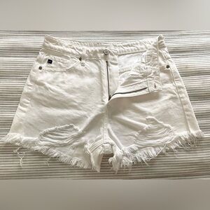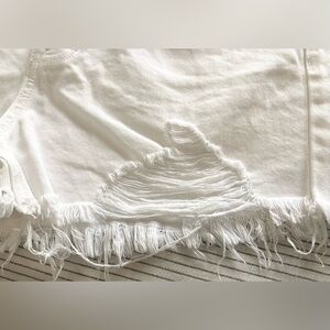 KanCan Womens M Solid White Denim Jean Shorts w/ Frayed Edge Boho Coastal Beach