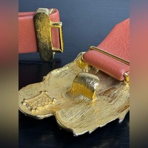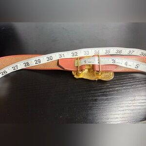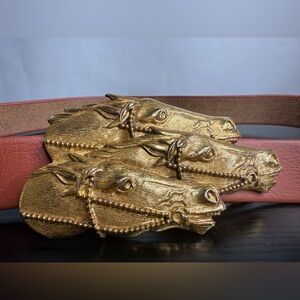 Douglas Paquette gold metal horse heads belt buckle strap waist 32”