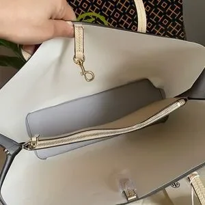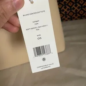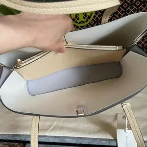 New, tory burch Blake center zip tote bag soft serve/bay gray