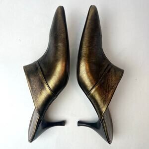 Donald J. Pliner Leather Kitten Heel Pointy Toe Mules Copper Sz 7