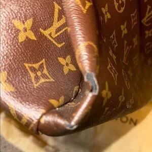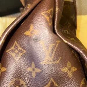 Elegant Louis Vuitton handbag in a classic brown monogram design. Perfect for adding a touch of luxury to any outfit. It has a small stain in one inside pocket (pictured) a few tears on the sides (pictured) but good condition. Comes with dust bag.