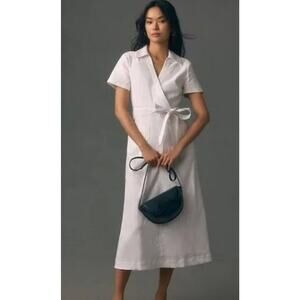 Anthropologie Maeve Women's Colette Wrap Short Sleeve White Midi Dress 1X