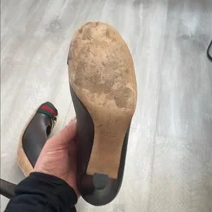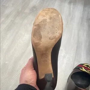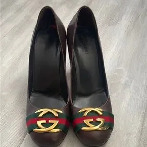 Gucci Brown Leather Heels with Gold Accent